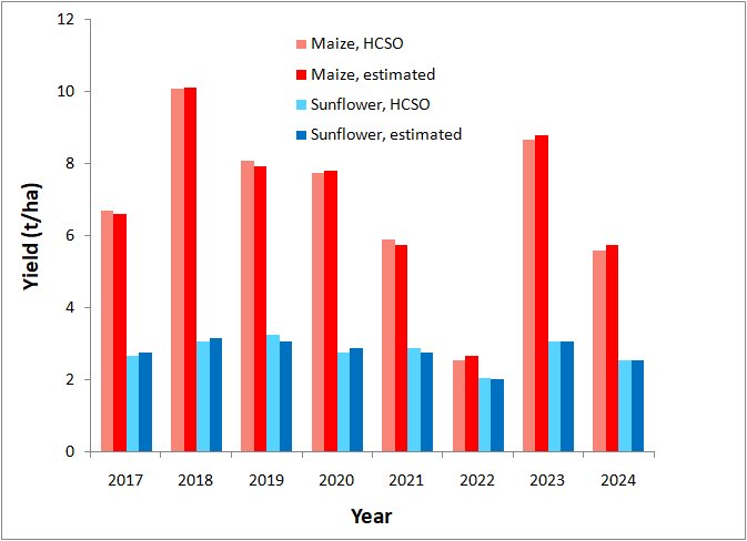 In the case of maize, the average error of our estimate was 2%, and in the case of sunflower,